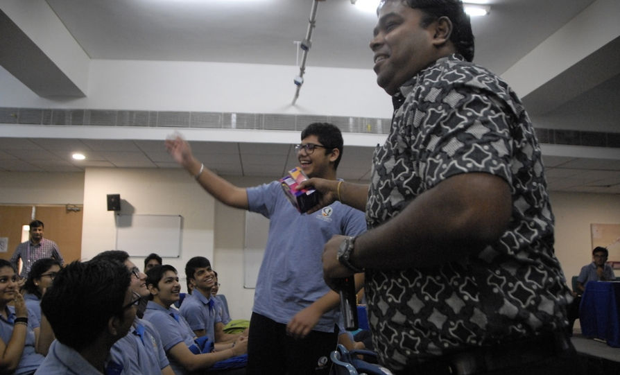 After this, we broke for lunch, and then resumed our programme in the Atrium of Takshshila for the distribution of teacher awards. Some awards were tinged with sentimentality, while others were downright hilarious. In between awards, the 12th graders put teachers in the “Hot Seat”, where they asked them some tricky questions which flummoxed them, but had the crowd gleefully anticipating their responses.